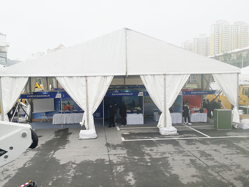 篷房的主體結構搭建采用高強度鋁合金型材,建筑原理為鋁材匣形梁框架,柱間支撐連接采用鋼部件,屋面采用鋼纜斜拉條,加固,屋面及墻面均有基布圍護。華熠鄭州篷房租賃公司搭建材料選用鋁合金型材GB/T-6063標準,經檢驗,材料合格。華熠鄭州篷房租賃公司,篷房租賃工程基礎堅固,所用材料及結構具備高的完整性與安全性,整體結構經過了風力測試和破壞測試。