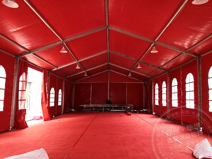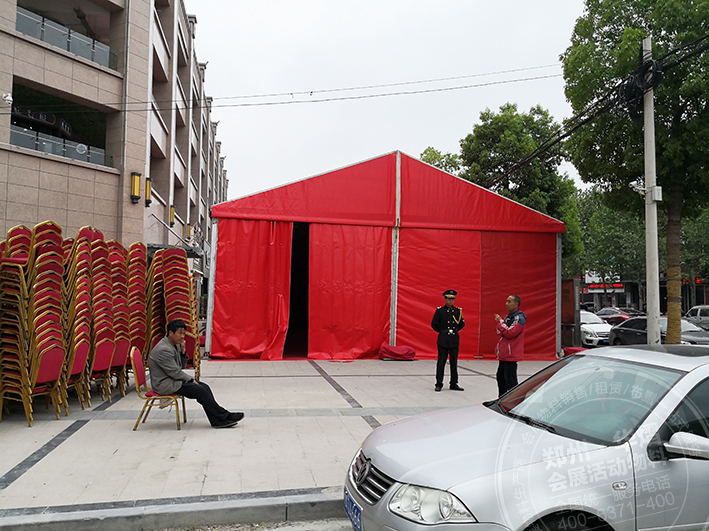 登封中天廣場(chǎng)紅色篷房租賃由鄭州華熠篷房提供,此次所搭建的篷房是一款大紅色活動(dòng)篷房租賃。從圖中所示,我們可以看出活動(dòng)所選用的地址是街道邊的水泥地上。篷房搭建不受場(chǎng)地限制,可以在水泥地上、土地上或者草地上等進(jìn)行施工。