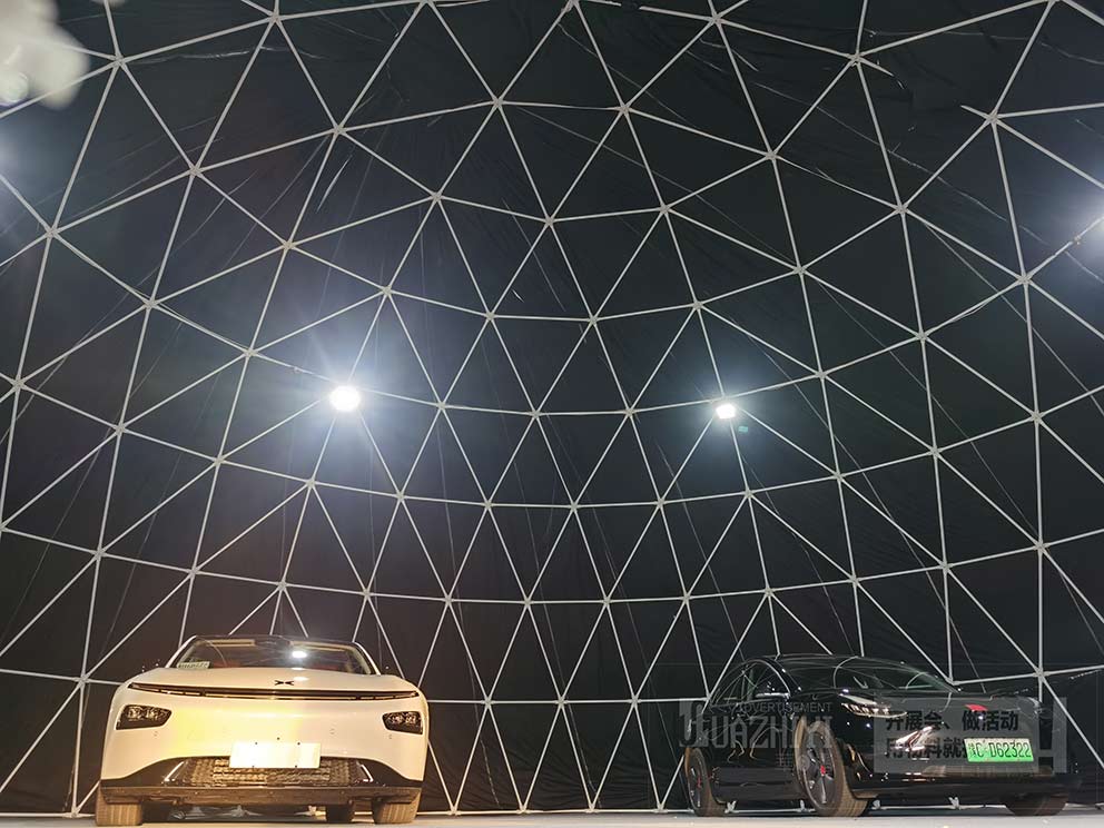 這次汽車活動(dòng)是小鵬品牌,為了在眾多參展商中脫穎而出,各大品牌紛紛尋求創(chuàng)新宣傳方式。鄭州球型篷房廠家憑借其豐富的經(jīng)驗(yàn)和工藝,為汽車品牌量身打造了別具一格的篷房。