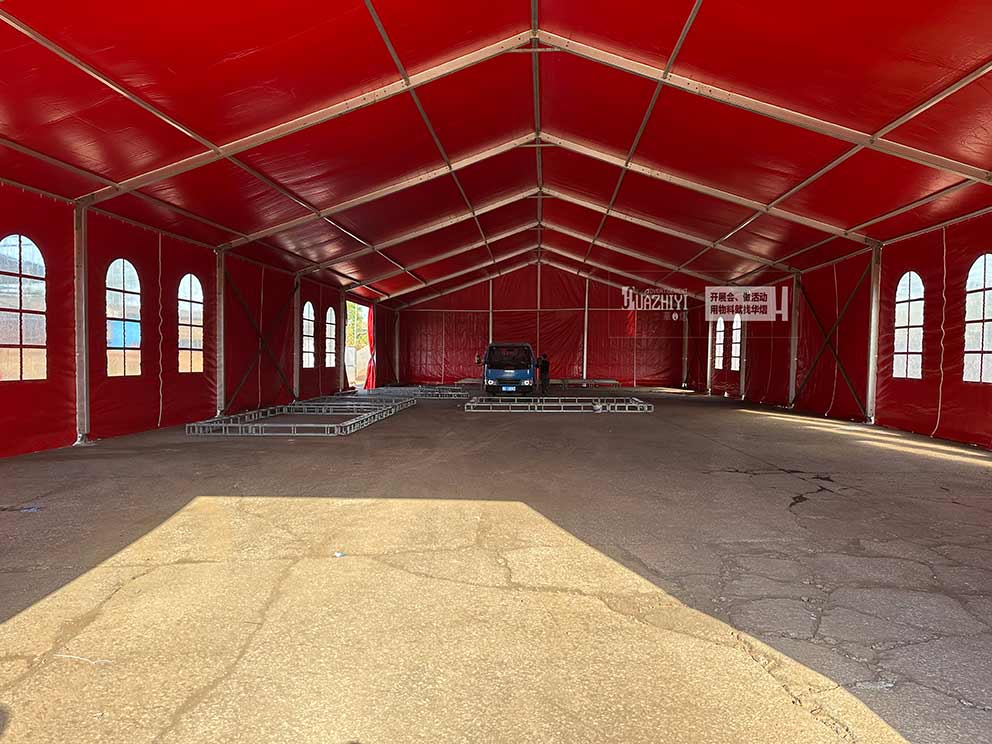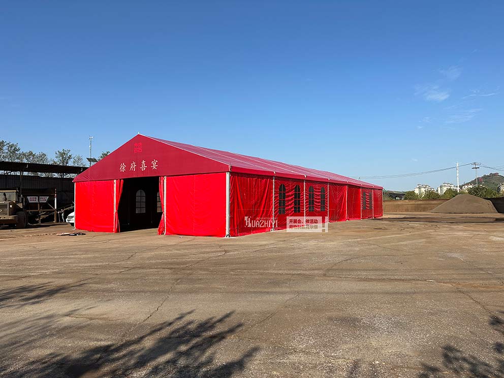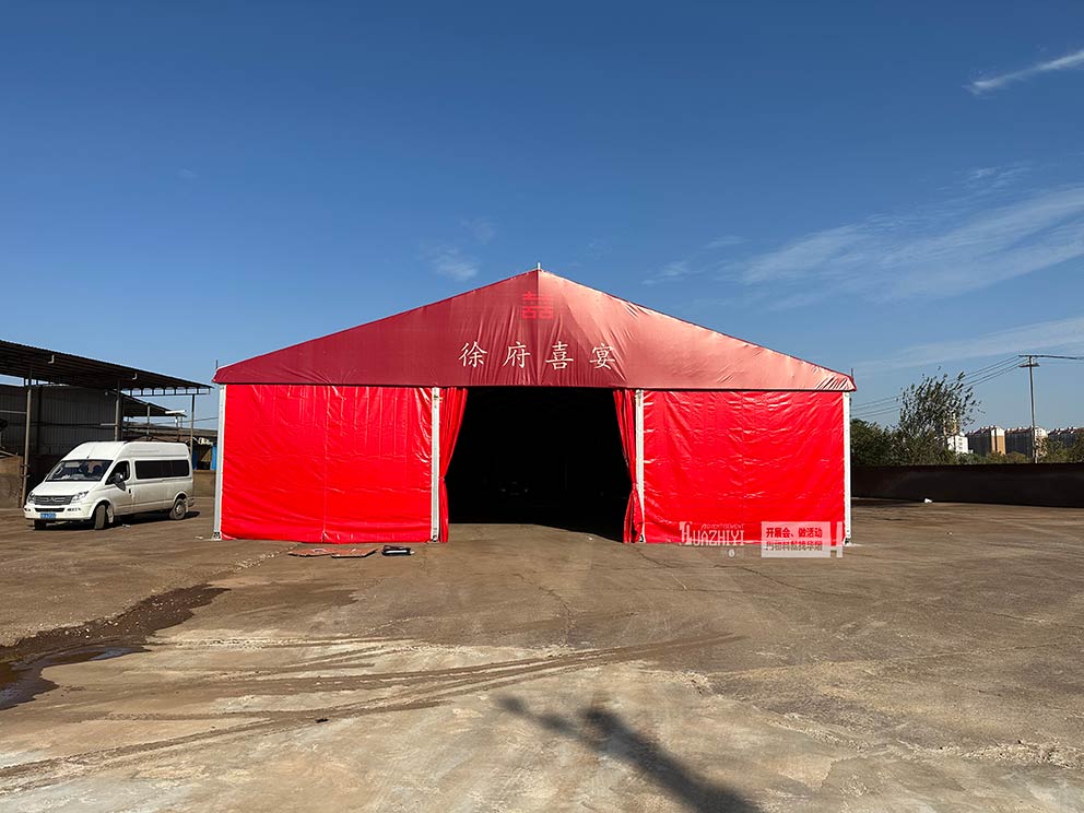 鄭州婚慶篷房出租公司搭建紅色喜篷現場。各種各樣的喜慶的、難忘的活動精彩紛呈,婚禮也是如此。每對新人都希望自己的婚禮是獨一無二的,那么有的新人就想到了在婚禮篷房內舉辦婚禮,相比于酒店的宴會廳,這會更加特別,靈活性也更強一些。鄭州華熠婚慶篷房租賃公司就是為此而存在的,我們可以為新人搭建夢幻般的場景,讓您省心。
