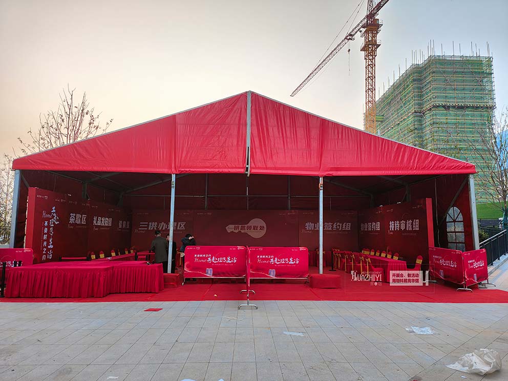 鄭州篷房租賃搭建交房現場紅色地產篷房。在新房的交房現場,紅色地產篷房提供的良好環境可以體現樓盤方的實力和品質,為業主們帶來更加舒適的體驗。