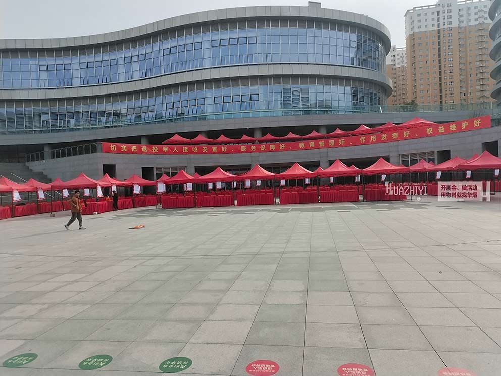 鄭州帳篷廠家助力金水區(qū)退役軍人招聘會搭建數(shù)頂紅色簡易帳篷。在華熠優(yōu)質(zhì)的帳篷產(chǎn)品和服務(wù)下,預(yù)祝招聘會順利舉行!
