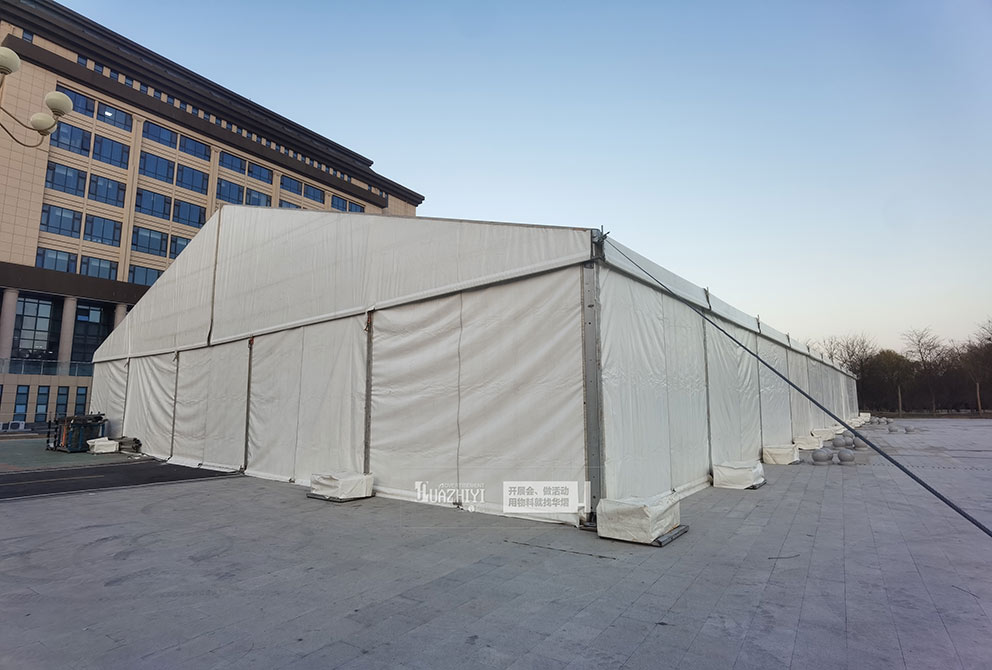 鄭州篷房租賃公司搭建駐馬店技師學院技能大賽篷房。昨日,鄭州華熠篷房已到河南駐馬店將一座篷房搭建完畢。這座篷房主要是為了舉辦技能大賽而用,使用大石塊配重,完全沒有損壞地面,這樣拆除后地面將不會有任何變化。