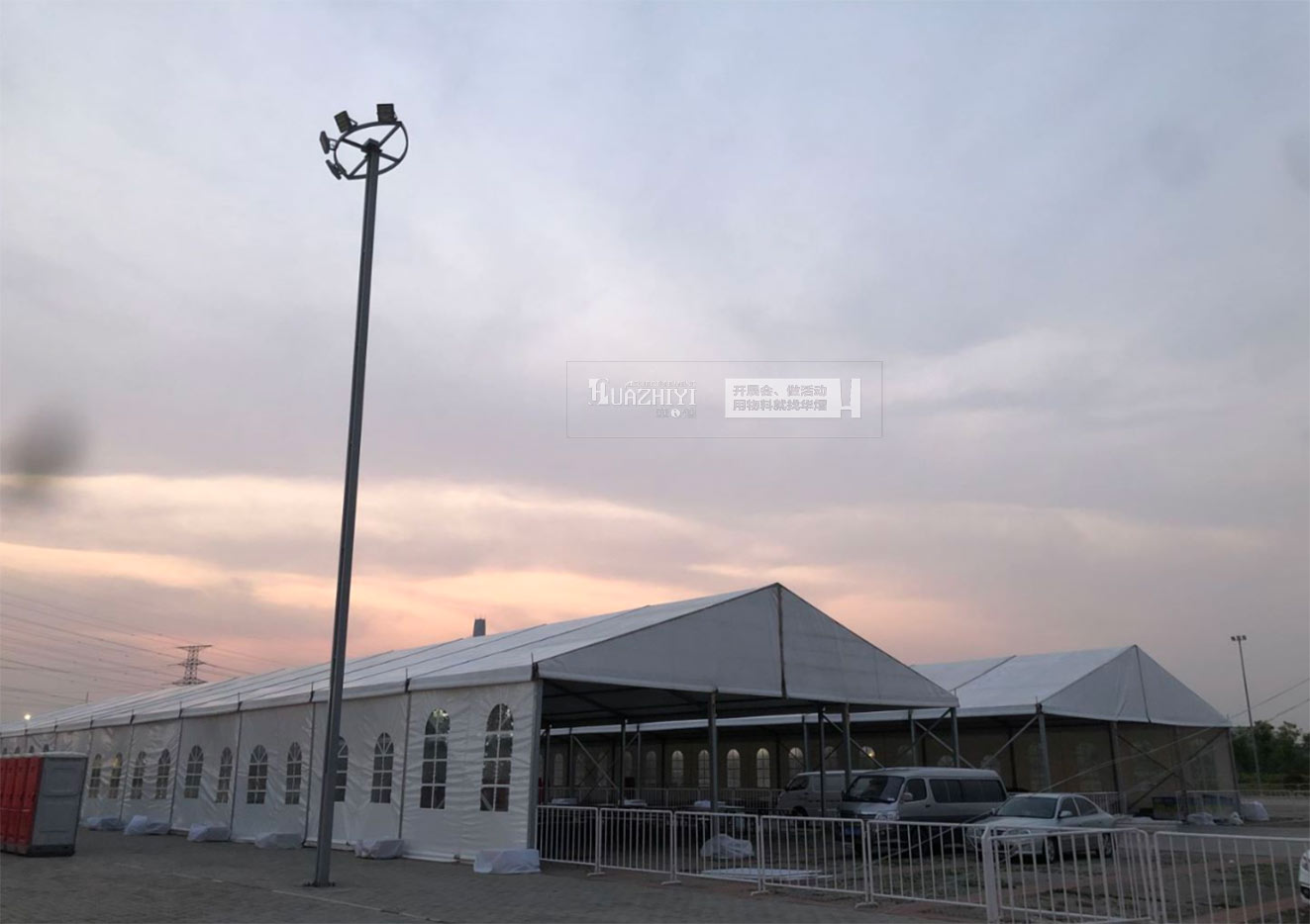 應對天氣變化的能力很關鍵。篷房頂部的防水涂層經過特殊處理,中到大雨都能穩穩接住,雨水順著斜坡流到地面的排水槽,不會漏進展廳打濕展品。夏天高溫時,篷房兩側的卷簾可以完全拉開,配合內置的工業風扇,讓空氣快速流通,再熱的天里面也不悶。