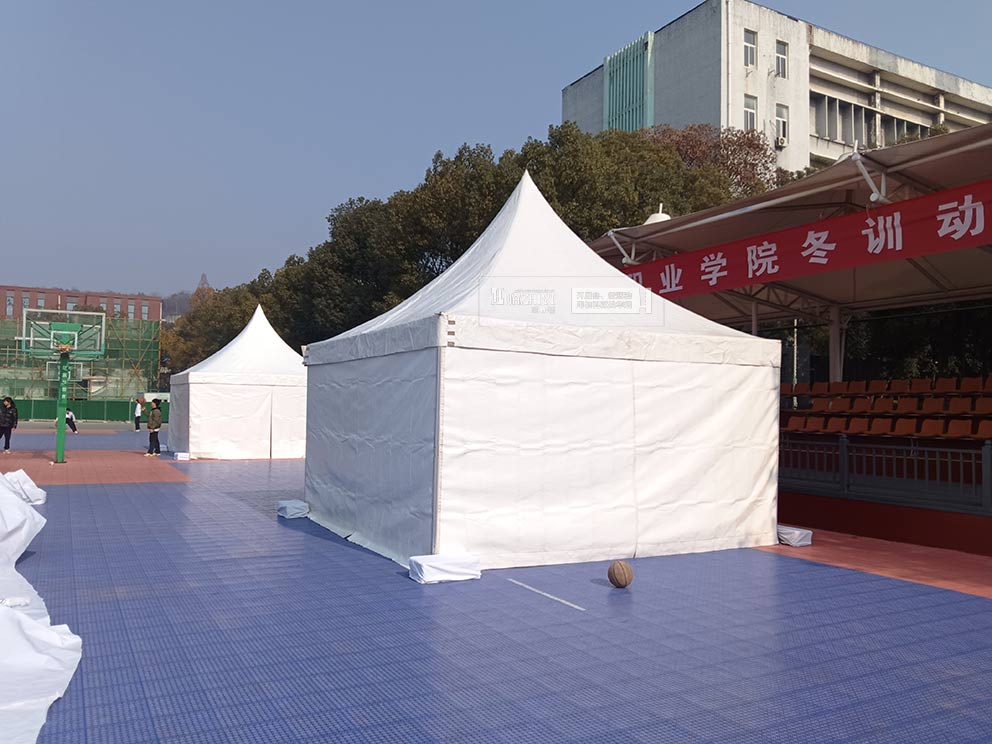 20-100 人的小型活動,對篷房的核心需求是“靈活易搭建 + 空間不浪費”。亳州阜陽篷房出租通常推薦 5-8 米跨度的人字頂篷房。100-500 人的中型活動,如社區(qū)節(jié)慶、中型展會、品牌推廣會等,往往需要劃分多個功能區(qū),篷房尺寸需兼顧“功能分區(qū)需求”與“人流效率”。亳州阜陽篷房出租建議優(yōu)先選擇 10-15 米跨度的篷房。