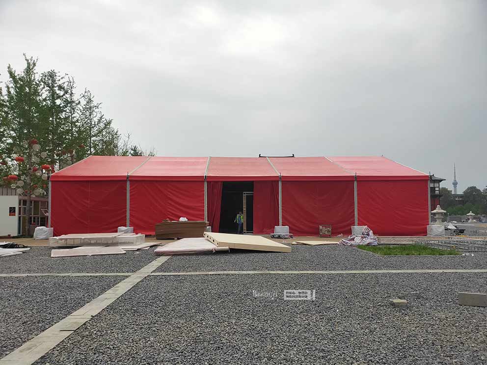 主動(dòng)供暖是冬季篷房保暖的核心。漯河婚禮篷房出租根據(jù)篷房面積給出針對(duì)性方案。小型篷房,可選用2-3臺(tái)立式空調(diào),放置在篷房角落,出風(fēng)口朝向場(chǎng)地中央,避免直吹賓客;中型篷房,建議采用燃?xì)鉄犸L(fēng)機(jī)或地暖設(shè)備,地暖則通過(guò)在篷房地面鋪設(shè)發(fā)熱膜,從底部向上均勻散熱,腳暖身更暖,尤其適合長(zhǎng)時(shí)間停留的婚禮場(chǎng)景。