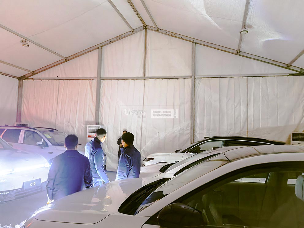 周口篷房租賃深入洞察零跑汽車簡(jiǎn)約、科技的品牌內(nèi)核,為此次臨時(shí)展蓬搭建白色人字形篷房。經(jīng)典的人字形結(jié)構(gòu)線條流暢利落,不僅最大化拓展了內(nèi)部展示空間,實(shí)現(xiàn)無(wú)立柱遮擋的通透布局,讓多款零跑車型能有序陳列,方便消費(fèi)者自由觀賞、近距離體驗(yàn)車輛細(xì)節(jié);純凈的白色篷布更是點(diǎn)睛之筆,既與零跑汽車的品牌視覺(jué)風(fēng)格高度契合,又能反射陽(yáng)光讓篷房?jī)?nèi)光線充足柔和,清晰呈現(xiàn)車輛的外觀設(shè)計(jì)與內(nèi)飾質(zhì)感,同時(shí)在梧桐街的戶外環(huán)境中極具辨識(shí)度,輕松吸引過(guò)往行人目光。