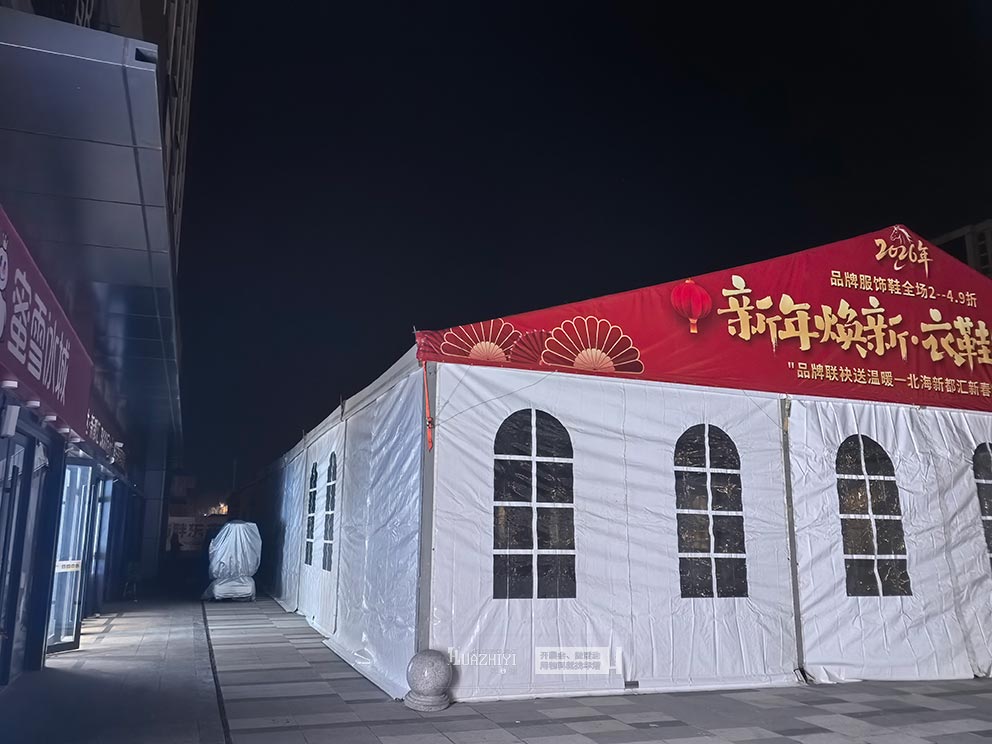焦作篷房出租的核心優(yōu)勢,在于對多元場地的超強適配能力。無論是草坪綠地、城市廣場,還是廢棄廠區(qū)、鄉(xiāng)村田野,其模塊化篷房均可快速搭建,無需復(fù)雜地基處理,水泥地、瀝青地、草地等各類場地均能穩(wěn)妥適配。針對不同活動需求,可提供人字型篷房、尖頂篷房等多種款式,跨度從5米至40米靈活選擇,長度可無限延伸,輕松滿足市集攤位布局、慶典主舞臺搭建、婚禮儀式區(qū)規(guī)劃等多樣需求。